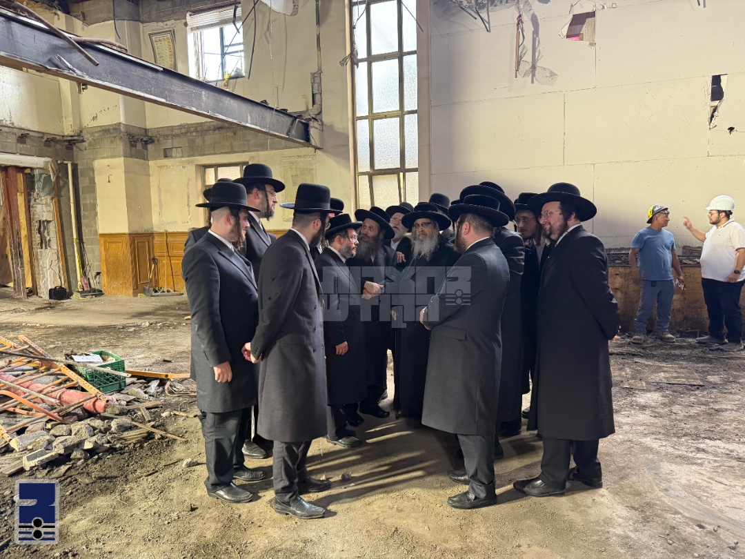 כ"ק אדמו"ר מסאטמאר שליט"א וועלכע האט זיך דעם אנהייב וואך צוריקגעקערט לביתו נאווה קודש אין וויליאמסבורג נאכן פארוויילן דורכאויס די זומער חדשים אין מחנה דברי יואל אין סוואן לעיק, איז היינט פארמיטאג אראפגעקומען אין ביהמ"ד הגדול סאטמאר אויף ראדני סטריט וואו דער רבי שליט"א האט זיך אומגעקוקט ביי די בוי ארבעט אינעם ביהמ"ד הגדול – בית מדרשו של רבי וואס איז אין די יעצטיגע זומער וואכן אריין אונטער א מאסיווע קאנסטרוקציע אונטערנעמונג צו אויסברייטערן דעם היכל הגדול.