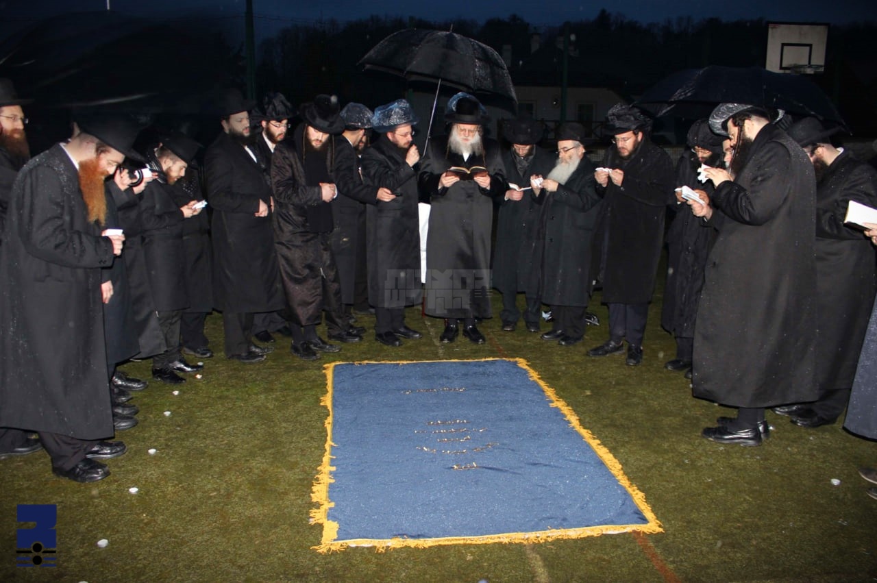 נאך די דברות קודש און בשורה מרנינה האט דער ציבור פייערליך אויסגעבראכן אינעם ניגון עתיק וואס איז מקובל פון רבי יחזקא'לע מקוזמיר, לויבנדיג השי"ת אויף די אפענע חסדים.