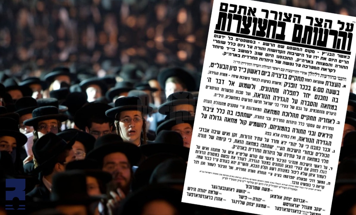 א שטורמישע מושב בית דין איז היינט אפגעהאלטן געווארן אינעם בית הגדול שבירושלים, וואו די שרי התורה ובראשם דער פוסק הדור הגאון האדיר רבי משה שטערנבוך שליט"א האבן געגעבן די ענדגילטיגע החלטה ודעת תורה איבער די מחאה אדירה וואס דער ביד"ץ האט אריגינעל געהאט פאררופן אויף מארגן מיטוואך, כ' סיון, אויסצושרייען דעם הילכיגן וויי געשריי און זעקת התורה קעגן די רשעי הציונים ועוקרי התורה וואס האבן באשטעטיגט דעם ביטערן גזירת הגיוס.