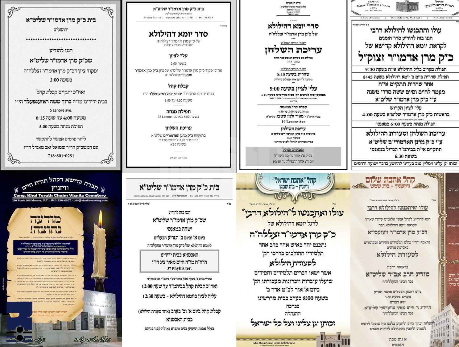 מודעות • סדרי וזמני ההילולא פון הרה"ק בעל 'תורת מרדכי' מוויז'ניץ זי"ע בצל בניו האדמור"ים שליט"א