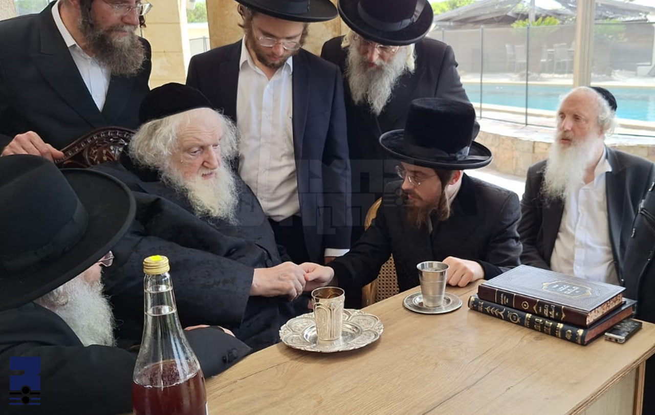 היינט ערב שבת איז כ"ק האדמו"ר מסאדיגורה שליט"א אנגעקומען אויף א באזוך ביים פעטער מרן פוסק הדור הגאון האדיר רבי משה שטערנבוך שליט"א בעל 'תשובות והנהגות' במקום הנופש אין נתניה וואו דער גאון וויילט די טעג אויף אפרוה, די רבי שליט"א איז געקומען אפנעמען ברכת מזל טוב לרגל שמחת הולדת בנו למזל טוב אין דערביי מכבד געוועהן דעם פוסק הדור מיט סנדקאות ביים שמחת הברית דעם קומענדיגן זונטאג. ביים באזוך איז ארומגעשמועסט געווארן שיינע ענינים ווען אינדערמיט האט דער גאון געזינגען עטליגע פזמונים פון די זמירות שבת קודש.