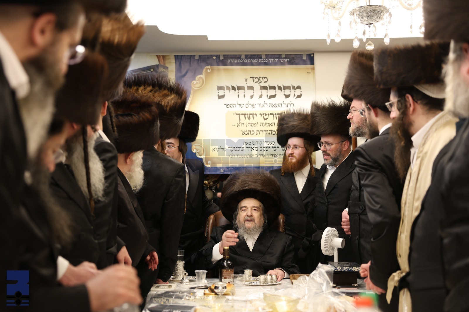 נאך ברכת המזון האט ר' יעקב מאיר שליט"א זיך ווידער ארויסגעלאזט אין א דערהויבענע ריקוד און דערנאך אויסגעטיילט די נייע ספר פאר די עורכים און תורמים און דערמיט איז געשלאסן געווארן די דערהויבענע מעמד.
