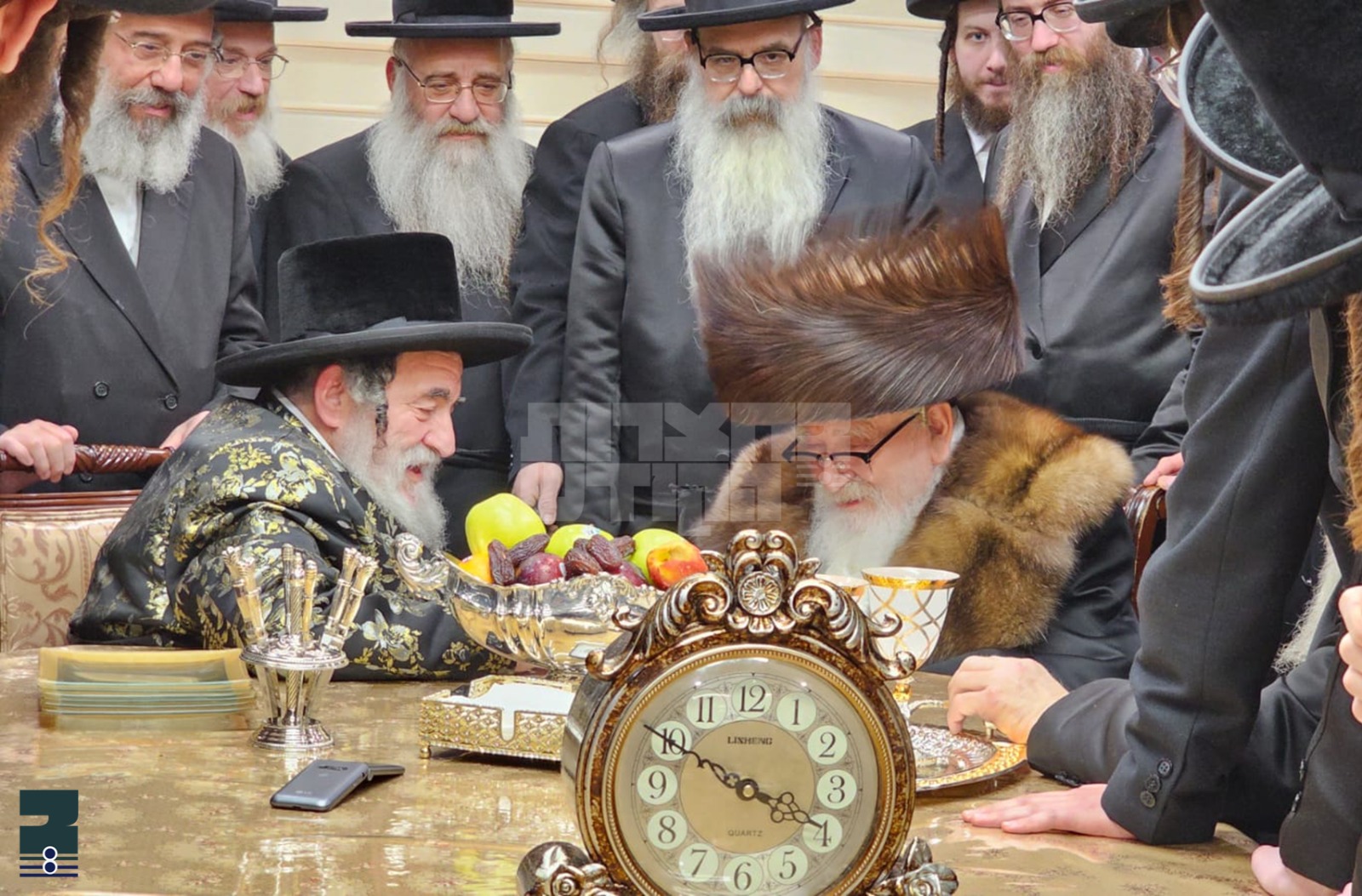 יעצט נאכמיטאג איז כ"ק האדמו"ר מסקווירא שליט"א אנגעקומען אויף א באזוך – ביקור גומלין צום שוואגער מרן האד' מוויז'ניץ שליט"א בבית בנו הרה"צ רבי יצחק טווערסקי אין שיכון סקווירא, די שוואגער'ס האדמור"ים האבן זיך געוואונטשן מזל טוב לרגל די געבורט פונעם בשותפות'דיגן איר אייניקל, בן הנולד ביי הרב יעקב יוסף טווערסקי, אין עס האט זיך פארצויגן א שיינעם שמועס. נאכן באזוך האבן זיך די רבי'ס איינגעשפארט ביחידות אין דערנאך זיך געזעגענט ברוב ברכות.