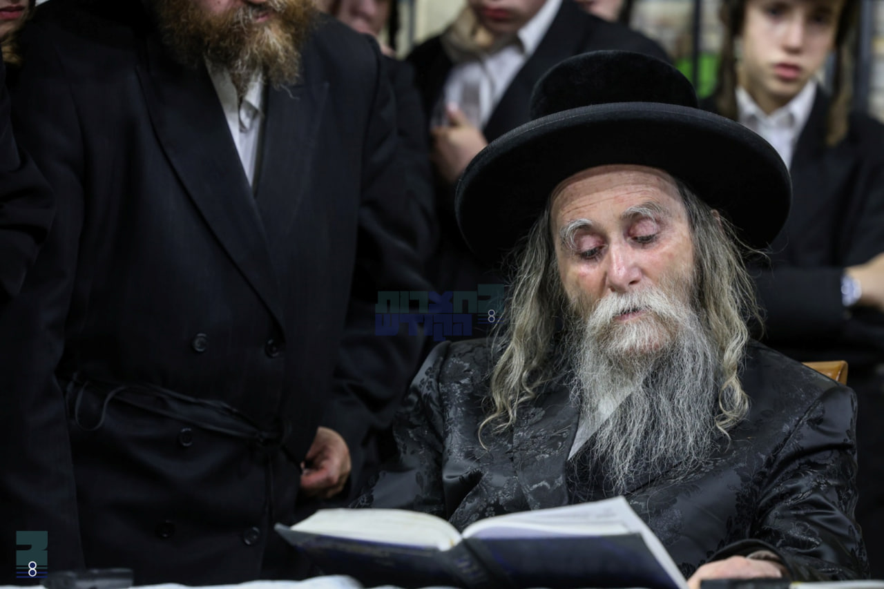 די רבי שליט"א ביי שמחת חתן בשעת די ריקודין ביים חתונה א קורצע צייט איידערן צוזאמפאלן