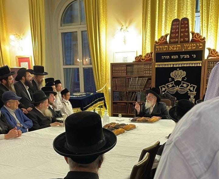 היינט אויפדערנאכט נאך מעריב האט כ"ק האדמו"ר מוויז'ניץ שליט"א אפגעראכטן א שולחן לחיים לרגל די שמחה במעון קדשו, די געבורט פון אן איר אייניקל למזל טוב, בן הנולד ביי נכדו הרב יחזקאל שרגא כץ זוהן פון חתנו הרה"ג רבי משה מרדכי כץ בן כ"ק האדמו"ר מוויען שליט"א, די רבי האט אויפגעטראטן מיט דברות קודש אין אפגעבנדיג א שבח והודאה אין מען האט געזינגען ניגוני שמחה, ביים ענדע איז מען פאראיבער וואונטשן מזל טוב.