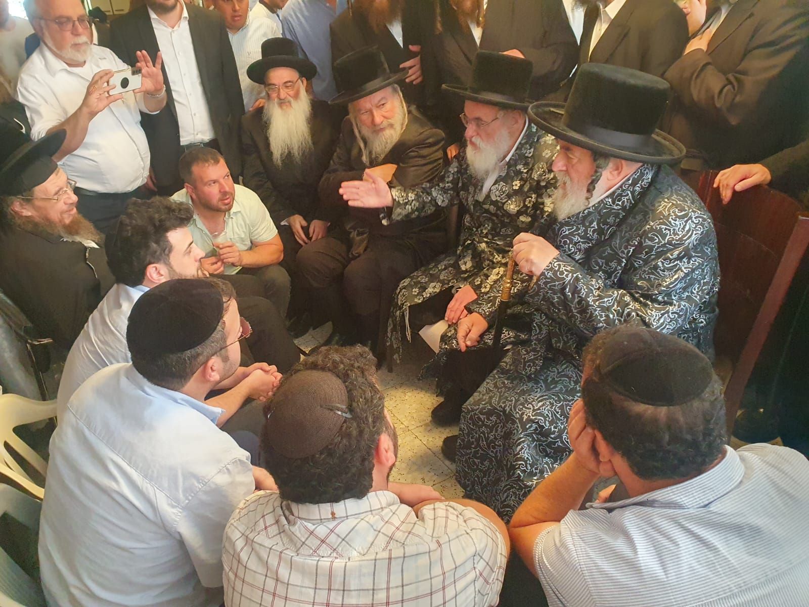 היינט פארמיטאג האבן האחים האדמו"רים מוויז'ניץ שליט"א אינאיינעם מנחם אבל געוועהן בבית משפ' נחשוני אין פתח תקוה וועלכע זיצן שבעה נאך די פטירה פון זייער שוועסטער-קינד הרב יצחק נחשוני ז"ל, די רבי'ס האבן געשמועסט מיט די אבלים צווישן זיי הרה"ג רבי משה נחשוני רב פון ראשון לציון א ברודער פונעם נפטר.