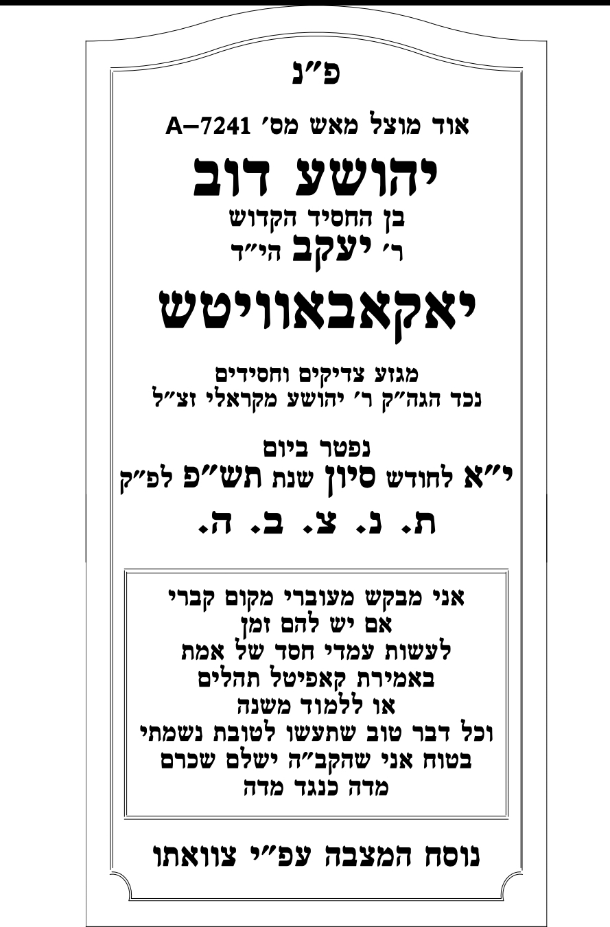 נייעס היסטארישע מציבה על קברו פון הרה"ח ר' יהושע'לע יאקאבאוויטש ע"ה געשריבן דורך admin יוני 11, 2020 יוני 11, 2020 אוקטובר 16, 2025 בוקמארק 2 שרייבט א קאמענט ביטול