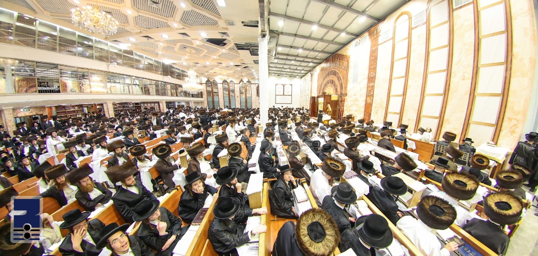 דושינסקא חסידים באנייען מיט התרגשות דעם פארגרעסערטע בית המדרש הגדול לכבוד יו"ט ראש השנה