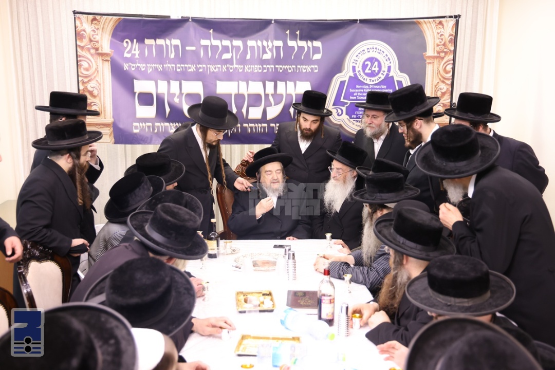 דער געהויבענער מעמד הסיום פון די רבנים אינערהאלב תורה-24 כולל קבלה חצות, האט אפגעצייכנט א סיום אויף די לימוד פון גאנץ זוהר, אינאיינעם מיט אוצרות חיים. און עס איז געווען געווידמעט ארויסצוברענגען די געטריישאפט צו תורה וואס הערשט צווישן די ווענט פון תורה-24, וואו עס ווערט געלערנט נגלה און נסתר יעדע מינוט פונעם טאג אן אפשטעל.