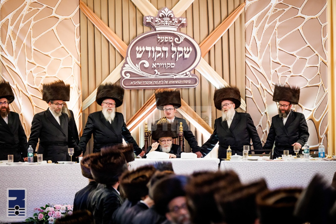 דאן האט מען געהאט די זכיה צו מקבל זיין את פני הקודש פונעם סקווירא רבי'ן, וועלכער איז ערשינען אינעם זאל לקול תרועת הזמר, עס האט אויפגעטרעטן דעם גזבר הקופה הרב נפתלי לויבער, ווען אינצווישן האט די קאפעליע פארגעזינגען שיינע פרקי חרוזין.
