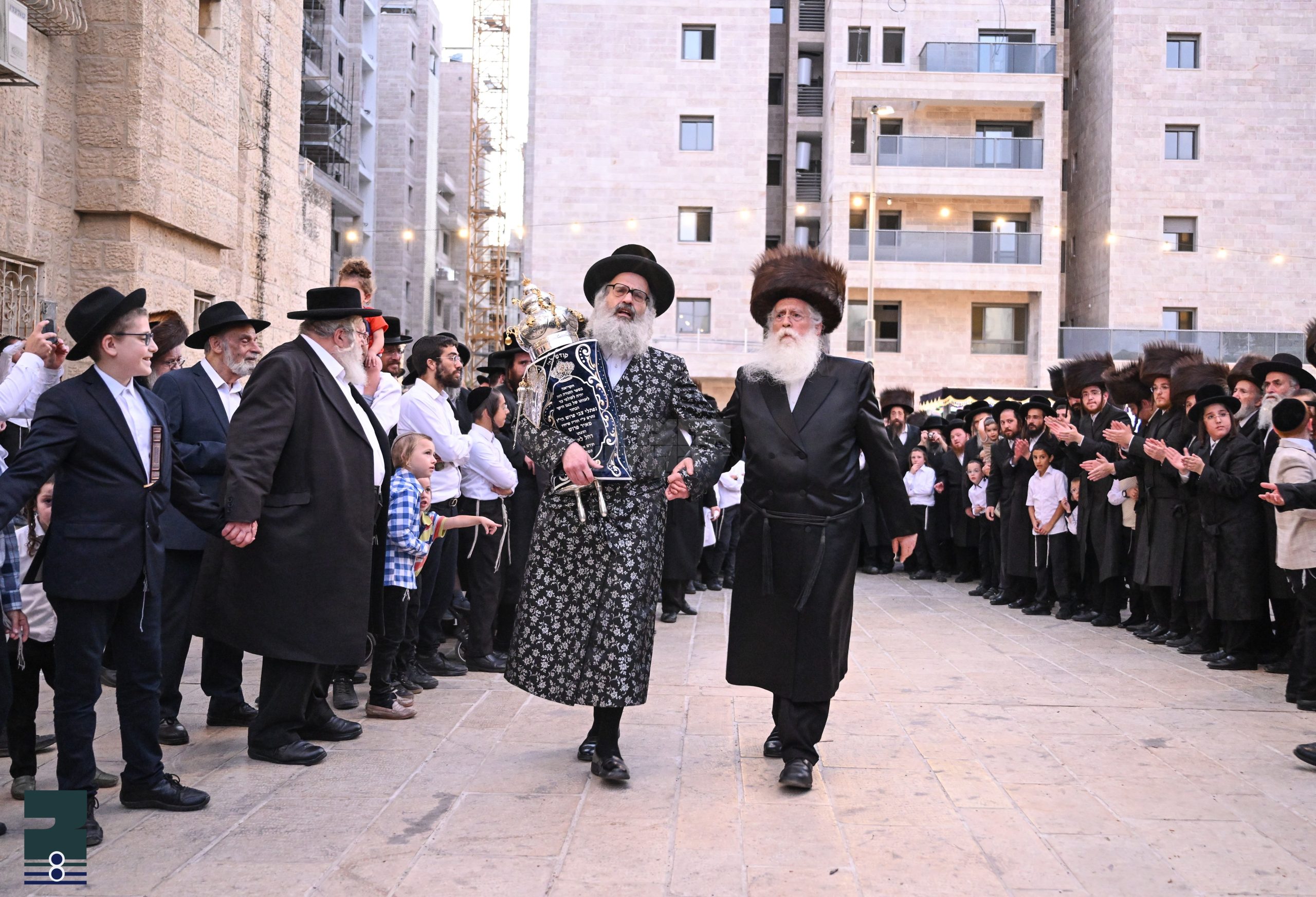 ירושלים: מאסן שטראם פון אדמור"ים ורבנים ביי שמחת הכנסת ספר תורה פון שלוחי דרבנן הרב מאיר פרוש הי"ו