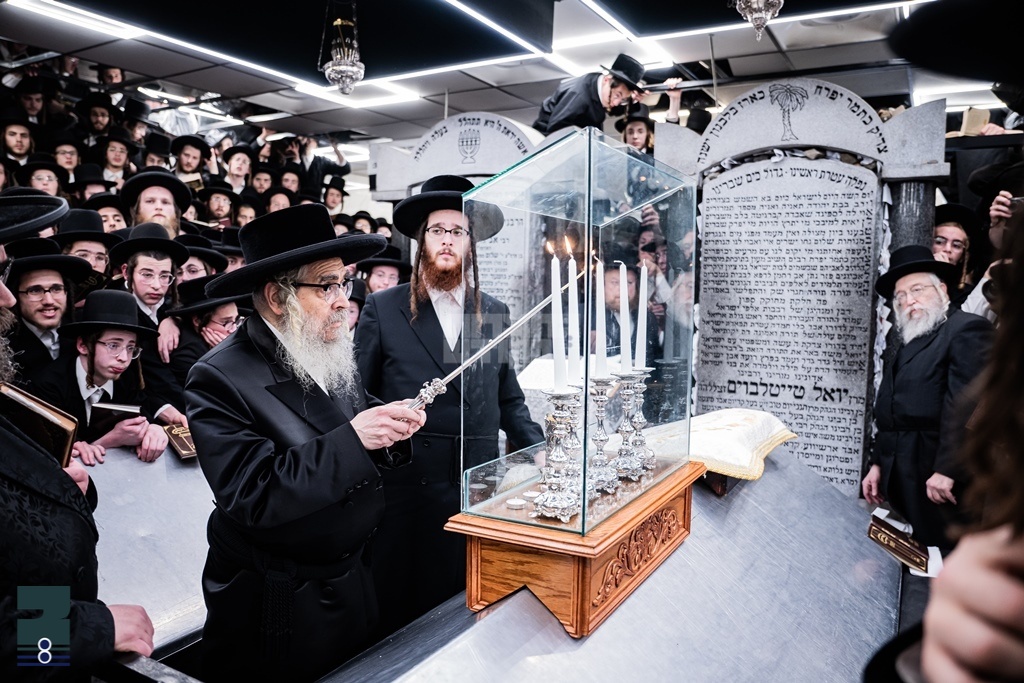 דער גאנצער ביהמ"ד איז אויסעגשטעלט געווארן מיט די מאקסימום פלאץ, און דער אויבן אן איז געווען באשיינט מיט די פילצאליגע רבנים גאונים וצדיקים רבני ומנהיגי קהלות קדושות, צוזאמען מיט די דייני ורבני ק"ק סאטמאר פון אומעטום, ובראשם דער מנהיג העדה כ"ק אדמו"ר מסאטמאר שליט"א.