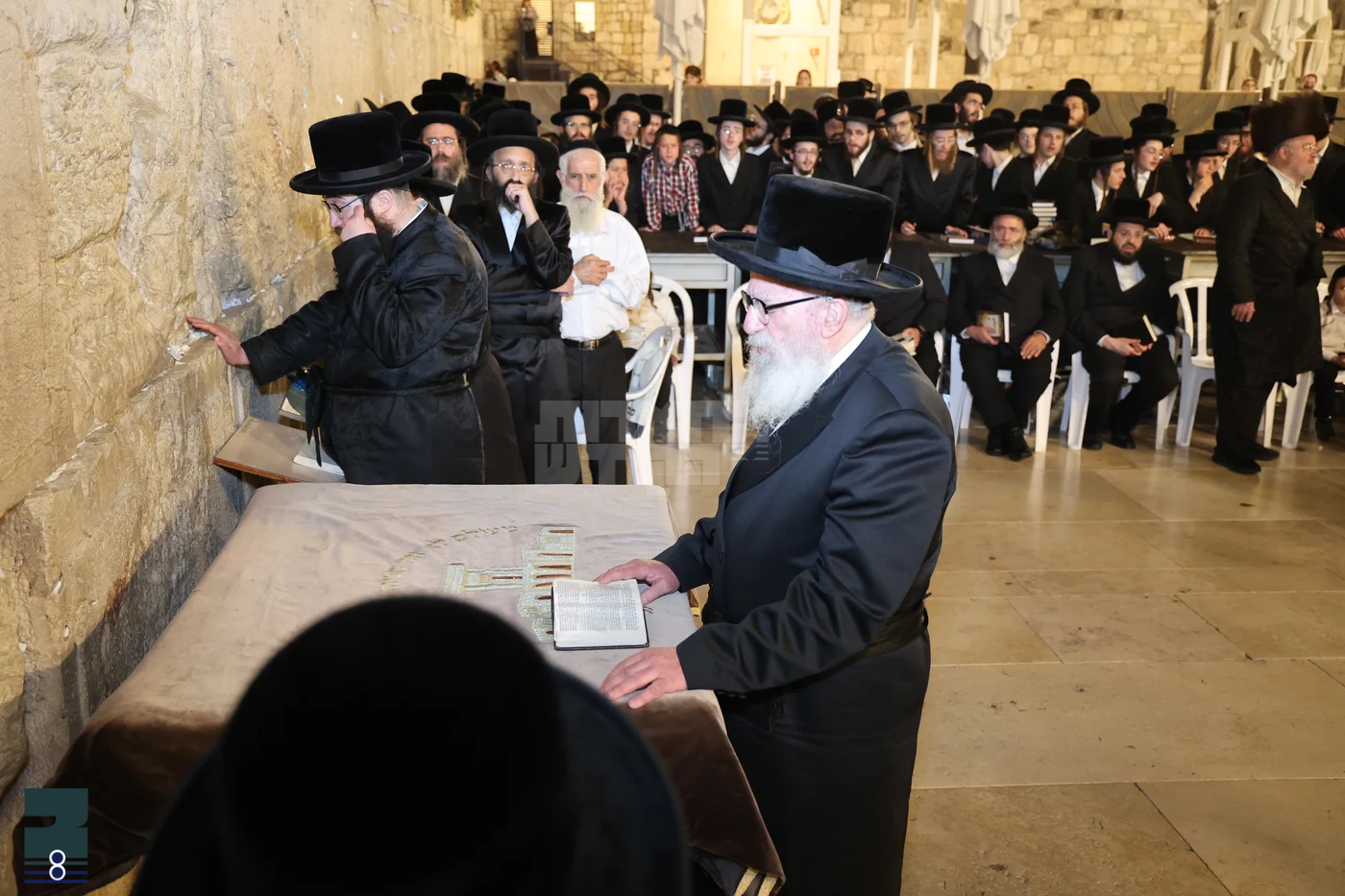 הויפט בלאט באריכט מעמד תפילת רבים בראשות הרה"צ רבי אהרן מענדל טווערסקי שליט"א מסקווירא ביים כותל המערבי