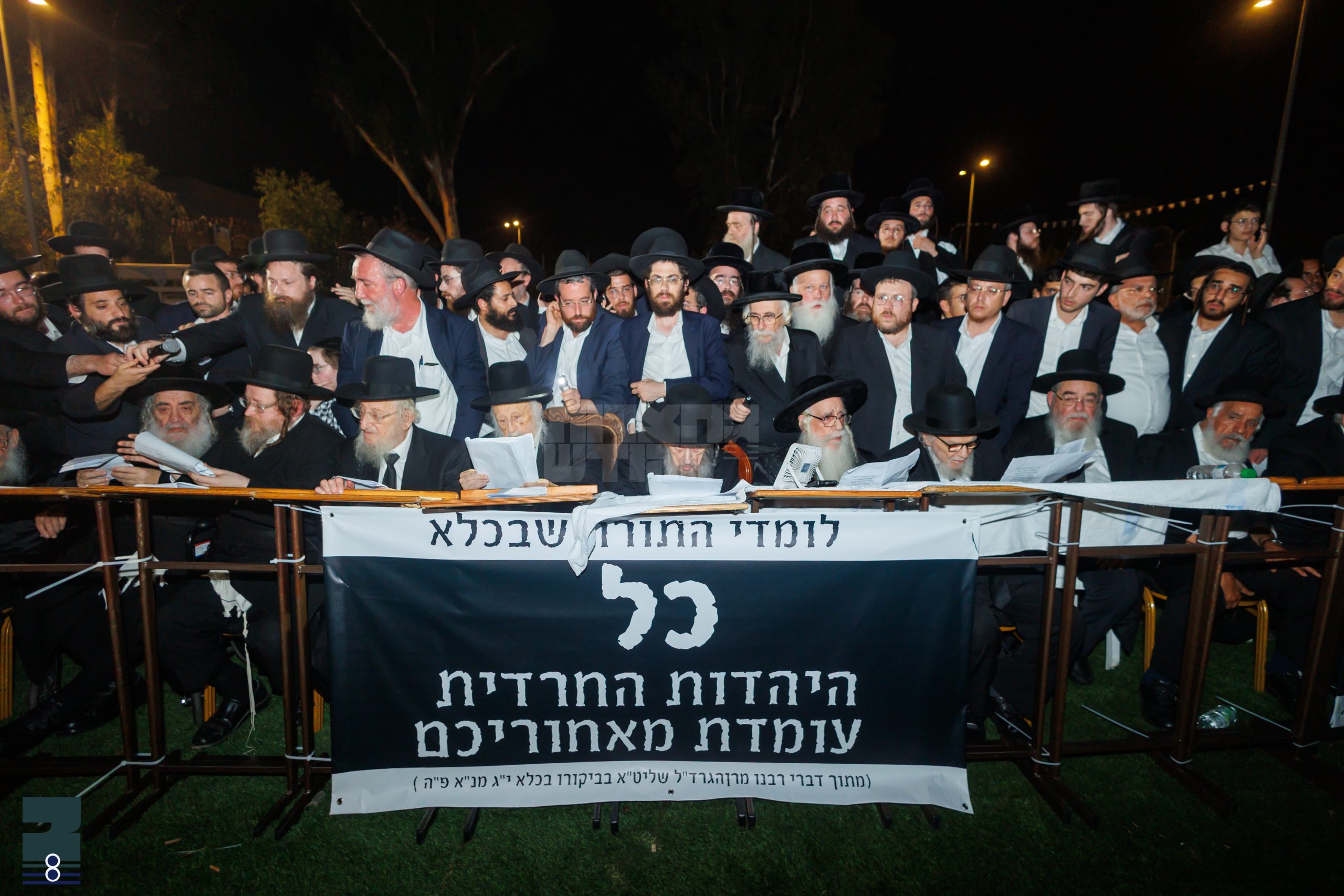 נאכפאלגענדיג די העפטיגע מחאות ביים מיליטער'ישע טורמע'ס כלא נומער 10 ווי עס זיצן איינגעשפארט עטליכע בחורי ישראל, פארן איינציגסטן חטא צוליב דעם וואס זיי האבן זיך נישט געוואלט שטעלן צום טמא'נעם מיליטער, איז דעם ליל שישי פרשת עקב פארגעקומען א היסטארישע עצרת מחאה אדירה פארנט פונעם טורמע, ווי העכער 100 גדולי הדור מרנן ורבנן ראשי הישיבות שליט"א, זענען ארויסגעקומען אויסשרייען די וויי געשריי, די זעקת בני ישראל, און מעורר זיין רחמי שמים מרובים אקעגן די ביטערע גזירת הגיוס וואס ווערט נאר ליידער ערגער פון טאג צו טאג, אין לך יום שאין קללתו מרובה מחבירתה.