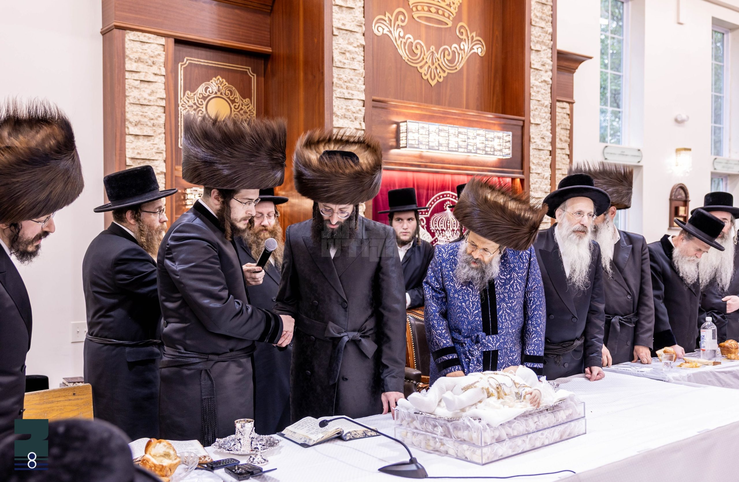 הויפט בלאט באריכט שיינעם שמחת פדיון הבן פון נכד האד' מבאבוב-45 פארגעקומען ערב שבת חזון אין מחנה מתיבתא באבוב-45