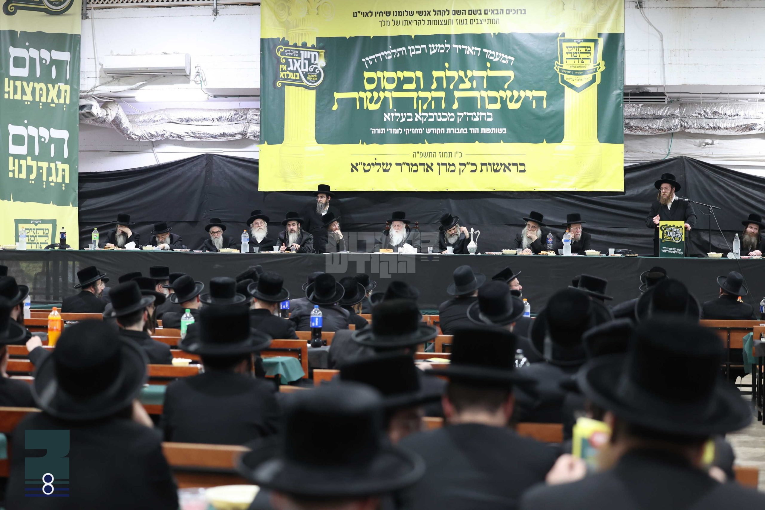 דאן האט מען מקבל געווען פני קדשו פונעם רבי'ן שליט"א וואס איז ערשינען צום מעמד, בנוכחותו האט אויפגעטרעטן חתנא דבי נשיאה הרה"ג ר' ברוך הלברשטאם וואס דינט אלס מרביץ תורה אין די ישיבה, און האט איבערגעגעבן א באריכט מהנעשה והנשמע בין כותלי הישיבה, איבער די געוואלדיגע בליה און וואקס בכמות ובאיכות, און די נחיצות צו ראטעווען די ישיבות און זעם יעצטיגן שעת חירום.