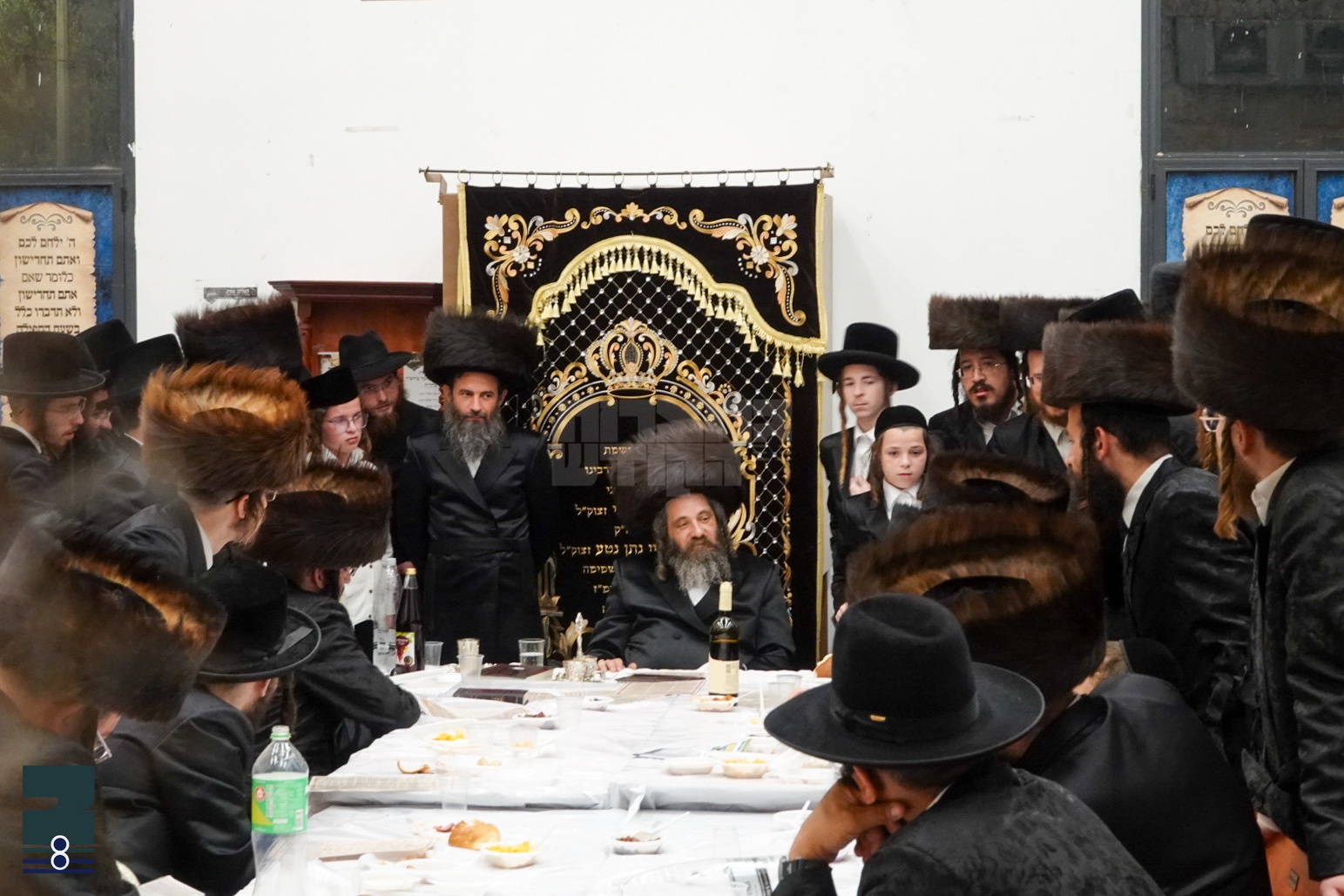 מוצאי שבת האט די רבי זיך באטייליגט ביים וועכענטליכן מלווה מלכה ביי כ"ק אדמו"ר מנדבורנא צפת שליט"א, וואו דער רבי איז מכובד געווארן ביותרת הכבוד.