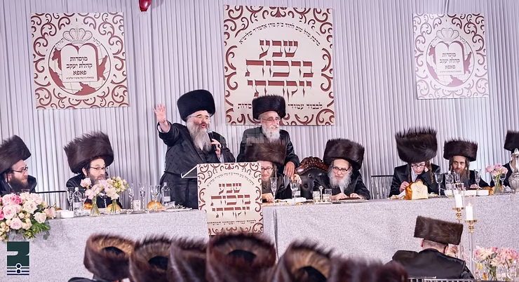 דער יושב ראש האט אויפגערופן דער מנהל המוסדות הרב יואל פריעדמאן שליט"א אויפצוטרעטן לכבוד הנאספים, און מען האט געזינגען פרייליכע ניגונים. מען האט געבענטשט מבעוד יום, וואו דעם רבינס זון די מחותן הגה"צ רבי מאיר גרינוואלד דומ"ץ פאפא האט געבענטשט על הכוס, די שבע ברכות איז צוטיילט געווארן צווישן דעם רבינס קינדער, און מיט ברכה אחריתא איז מכובד געווארן די ראש הקהל הרב יחיאל מיכל אבערלענדער שליט"א.