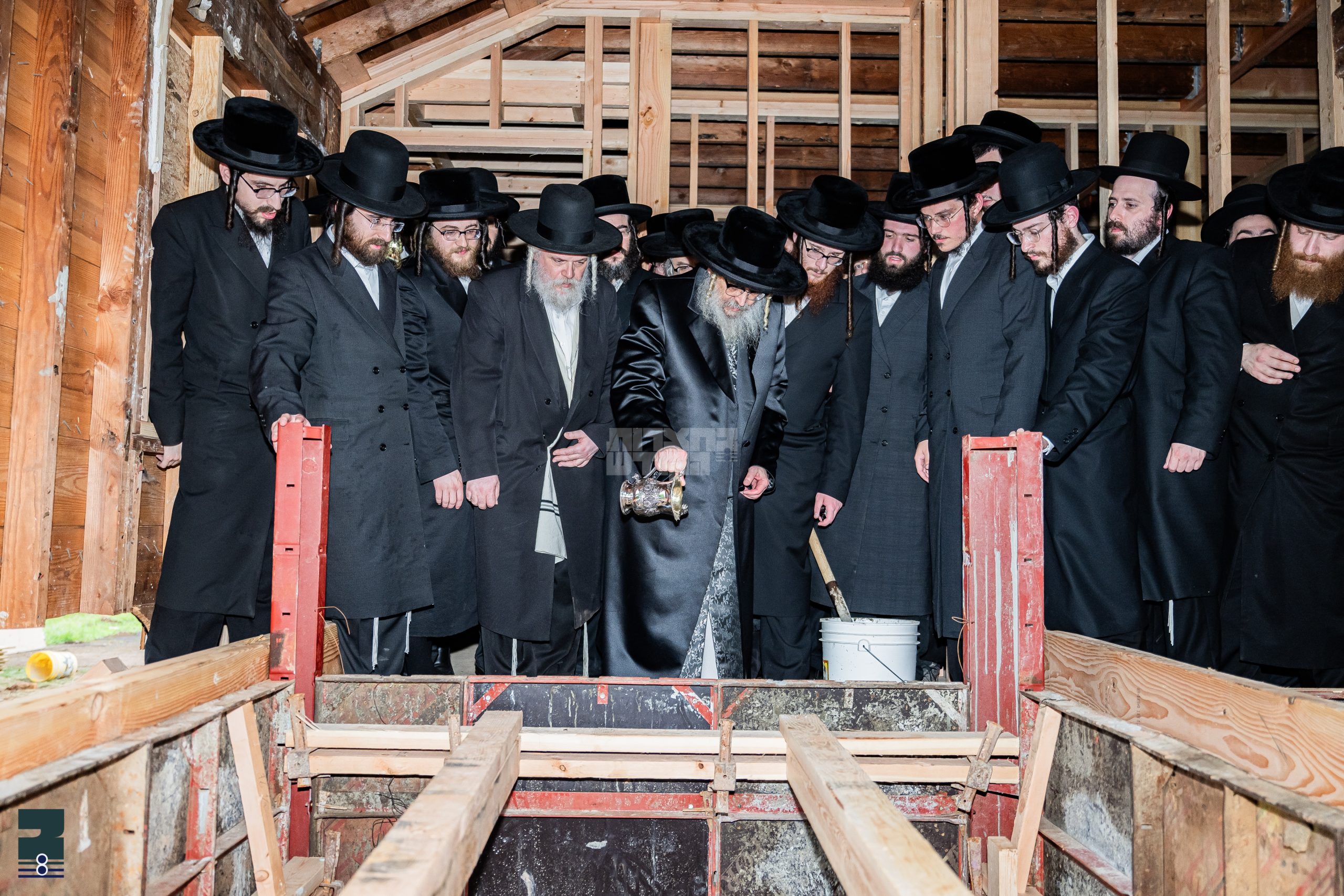 דערנאך איז דער רבי אראפ אויפן אונטערשטן שטאק און זיך אומגעקוקט אויף די היכל התורה וואס ווערט געבויעט, און דאן איז פארגעקומען די מעמד יציקת הבורות וואו דער רבי האט געגאסן די בורות און מכבד געווען די אנוועזנדע רבנים ובראשם דער מייסד העיר כ"ק האדמו"ר מקאסאן שליט"א און כ"ק האדמו"ר מראחמיסטריווקא לינדען שליט"א און באזונדער די ראשי והנהחלת הקהילה.