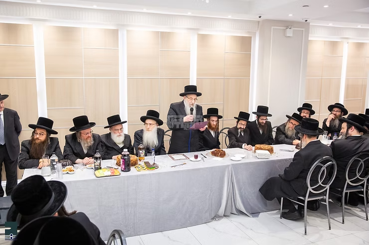 שמחת התנאים לרגל די שידוך שליסן פון החתן א זוהן פון הגה"צ רבי מאיר יצחק הורוויץ שליט"א אב"ד לינסק בן הגה"צ רבי יעקב שרגא הורוויץ שליט"א אב"ד זרע קודש וראש ישיבת בית מאיר וחתן כ"ק אדמו"ר מזידיטשוב טשיקאגא זצ"ל מיט די כלה א טאכטער פון הגה"צ רבי יואל מאסקאוויטש שליט"א אב"ד מאור הגולה מאנטריאל בן הגה"צ רבי יצחק אלעזר מאסקאוויטש שליט"א משאץ וחתן כ"ק אדמו"ר הרה"ק מסקולען זצ"ל בעל ישועת יעקב.