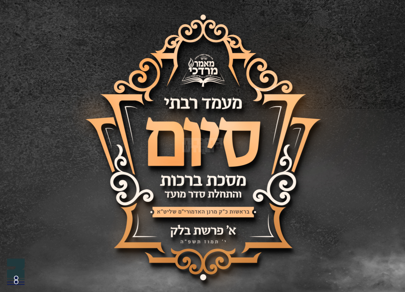 הויפט בלאט באריכט גראנדיעזע "סיום מס' ברכות והתחלת סדר מועד" במסגרת "מאמר מרדכי" דורך אלפי חסידי וויזניץ קומענדיגן א' בלק