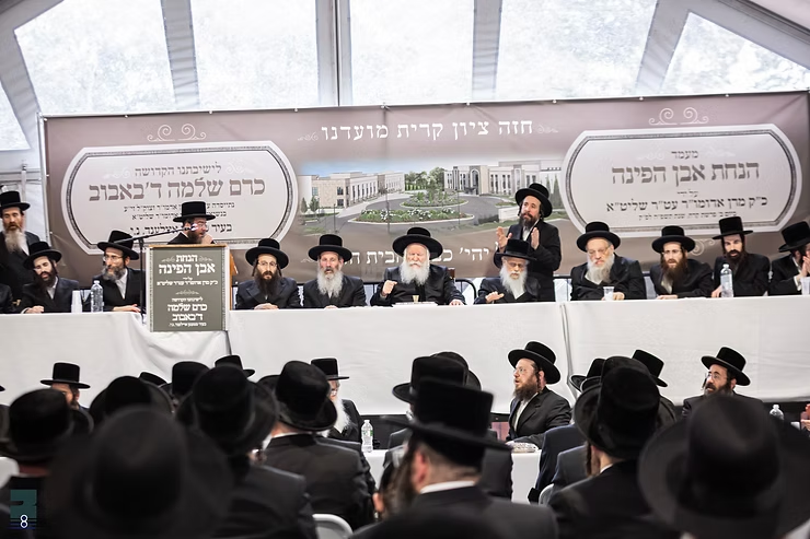אֶבֶן מָאֲסוּ הַבּוֹנִים: באשיידענע מעמד הנחת אבן הפינה פאר נייעם קרית הישיבות ד'באבוב אין סטעטן איילענד