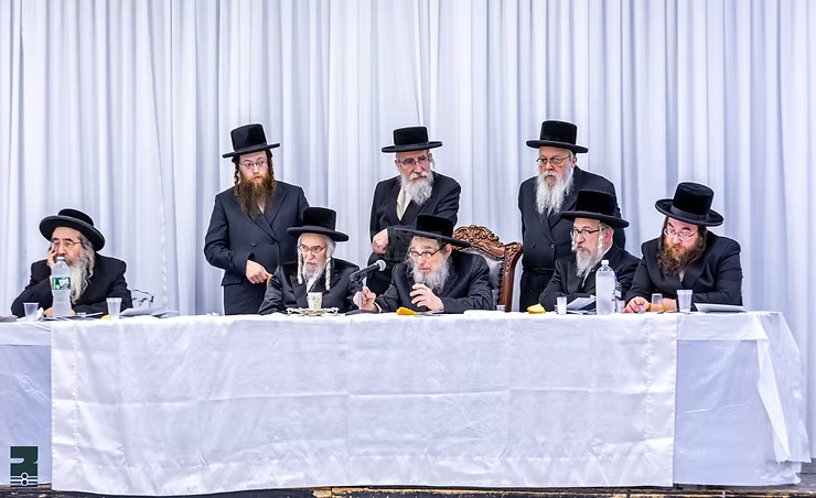 הערליכע מסיבת "חומש סעודה" אפגעראכטן אין תלמוד תורה פאפא – לינדען בראשות האד' מפאפא – נשיא המוסדות