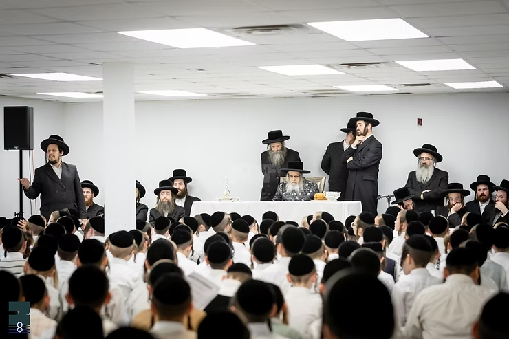 פון דארט איז דער רבי שליט"א צוריק אין בנין התלמוד תורה, וואו מען האט באנייט דעם נייעם מאדולער בנין פאר די גרעסערע כתות און די עס זאל, וואו די גרעסערע קינדער זענען געווען פארזאמעלט כשתילי זית סביב. די קינדער האבן געזינגען ווארימע ניגונים לכבודו פון רבי'ן שליט"א, און דאן האט דער רבי שליט"א געטרונקען לחיים און אנגוואונטשן פאר אלע חשוב'ע מלמדים ומחנכים צו האבן הצלחה אין די עבודת הקודש.